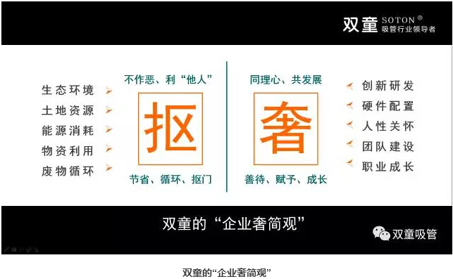 在商業(yè)本質(zhì)的認(rèn)知下,“雙童”形成了自己獨(dú)特的企業(yè)“奢簡(jiǎn)觀”:公司在建廠之初建設(shè)了雨水收集、廢水處理、垃圾回收等節(jié)能降耗設(shè)施,通過(guò)這樣創(chuàng)新的方式把生產(chǎn)做到了零排放。與此同時(shí),建設(shè)花園式工廠,提高土地利用率,對(duì)能源、物資追求產(chǎn)出最大化,對(duì)廢物不斷循環(huán)利用,從而每年“摳”出數(shù)百萬(wàn)元,“奢侈”地用在創(chuàng)新研發(fā)、硬件配置以及對(duì)員工的人性關(guān)懷、團(tuán)隊(duì)建設(shè)上,和團(tuán)隊(duì)一起共發(fā)展!