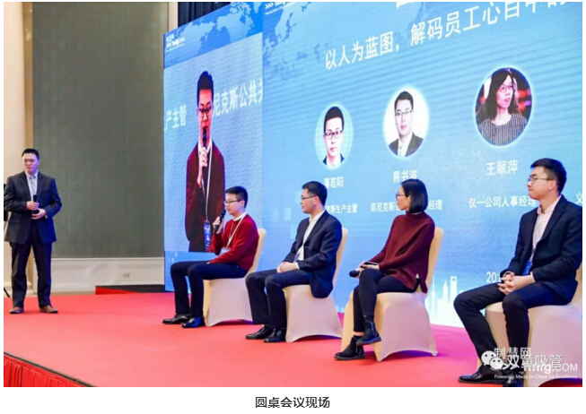 在課程分享結(jié)束之后,“以人為藍圖,解碼員工心目中的好公司”圓桌對話正式開啟!A.O.史密斯公司經(jīng)理人代表、菲尼克斯公司經(jīng)理人代表、江蘇僅一公司經(jīng)理人代表、隱形冠軍優(yōu)秀經(jīng)理人代表李二橋上臺共同分享他們在企業(yè)的成長經(jīng)歷,解碼如何打造員工心目中的好公司。