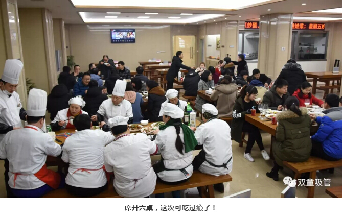 上菜咯!我們?cè)趩T工餐廳里席開(kāi)六桌,所有“雙童”管理層、后勤人員和部分前員工們都有口福啦!忙碌了一整年,竟然有大BOSS為自己服務(wù)的一天,還真是沒(méi)想到呢!