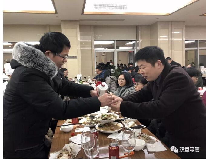 終于,樓大廚也圓滿(mǎn)完成了自己的“廚師”任務(wù),來(lái)到席間與大家一同享用美味。瞧,大家拿著酒杯不斷敬酒,感謝同事們一年下來(lái)的配合幫助。一輩子不喝酒的樓總也用一碗湯與大家干杯,現(xiàn)場(chǎng)熱鬧極了!大家吃飽喝足,明年有勁,擼起袖子加油干吧!
