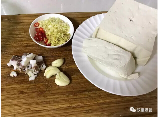 十九、準(zhǔn)備適量火腿,準(zhǔn)備新鮮的鹽鹵嫩豆腐,一般一斤螃蟹配3斤左右豆腐,豆腐一定要新鮮水嫩。