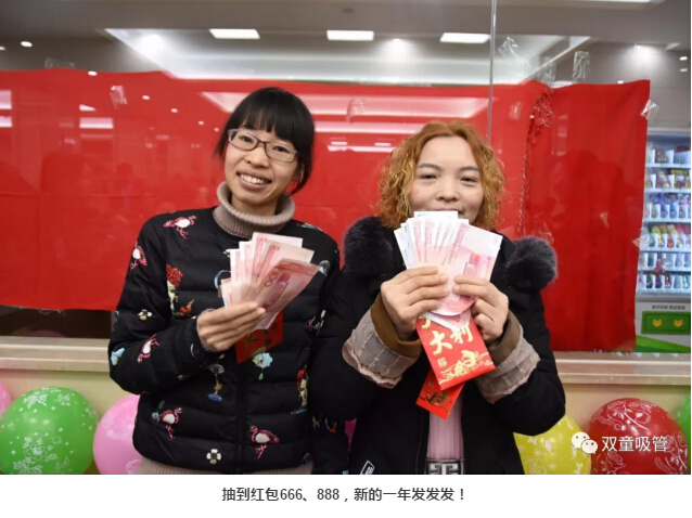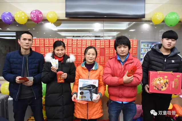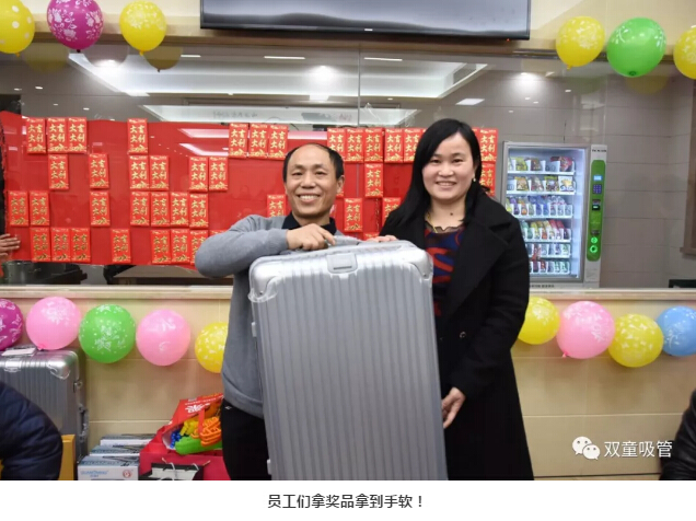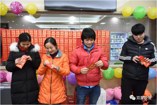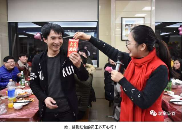 如此熱鬧的年會(huì)抽獎(jiǎng)當(dāng)然也不能少!一個(gè)接著一個(gè)紅包輪番抽出,話費(fèi)卡、電影券、88、188、288、666、888各種面值的紅包一起被抽出,大家拿紅包拿到手軟!瞧,抽到666和888的同事們笑的都快合不攏嘴啦!在一片歡聲笑語(yǔ)中,“雙童吸管”春節(jié)聯(lián)歡晚會(huì)也圓滿結(jié)束!