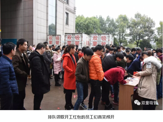 瞧,拿到紅紅火火大紅包的員工們多開心呀!“幸福都是奮斗出來的!”大家都斗志滿滿,立志新的一年工作更上一層樓!