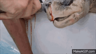 這個(gè)過(guò)程海龜痛苦萬(wàn)分,鼻孔鮮血直流。