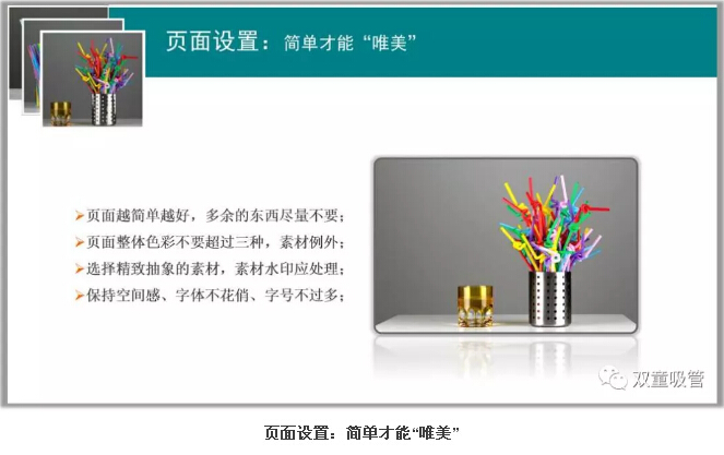 制作PPT除了以上的技巧外,PPT內(nèi)容關(guān)鍵詞句的提煉、配圖素材的選擇和準(zhǔn)備、照片的處理、動畫的設(shè)置、視頻鏈接的添加也是讓PPT更加美觀的因素!