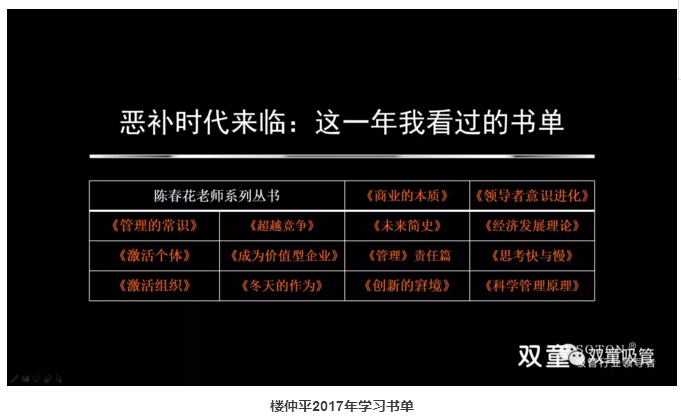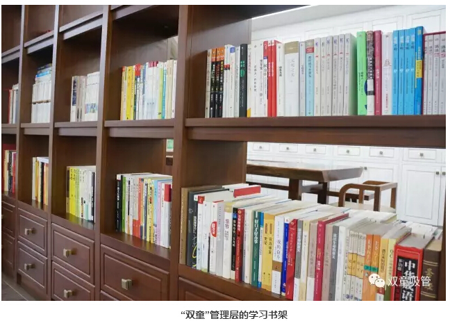 除了基層員工的學習之外,“雙童”也十分注重管理層的學習提升!這兩年,公司統(tǒng)一購買了各類管理書籍,“雙童”樓仲平和管理層們一起學習管理理念。