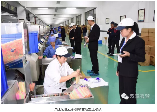 就拿成型工來說,“雙童”在起草編制了《吸管成型工培訓教材》之后,專門將此本教材形成PPT對員工進行培訓和講解!比如,生產廠長李秀前為大家講解成型工崗位上衛(wèi)生管理、操作規(guī)范和安全管理等知識…… 如今,“雙童”的近百位員工考取了成型工職業(yè)資格證書,擁有了國家資質認定!