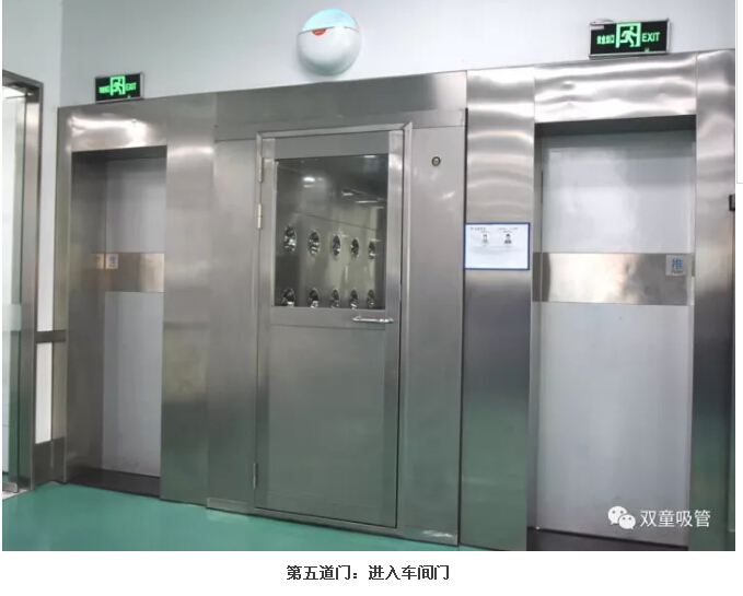 5.員工們風(fēng)淋后經(jīng)過(guò)第五道車(chē)間入口門(mén),進(jìn)入車(chē)間進(jìn)行生產(chǎn)工作。