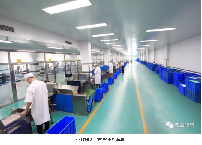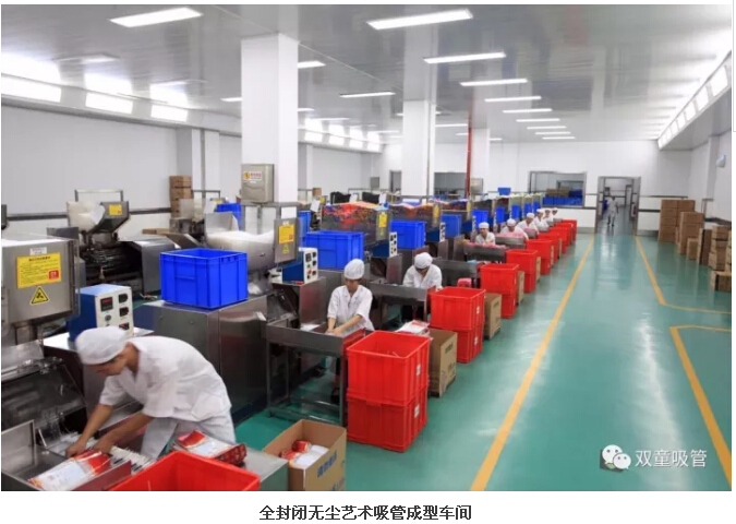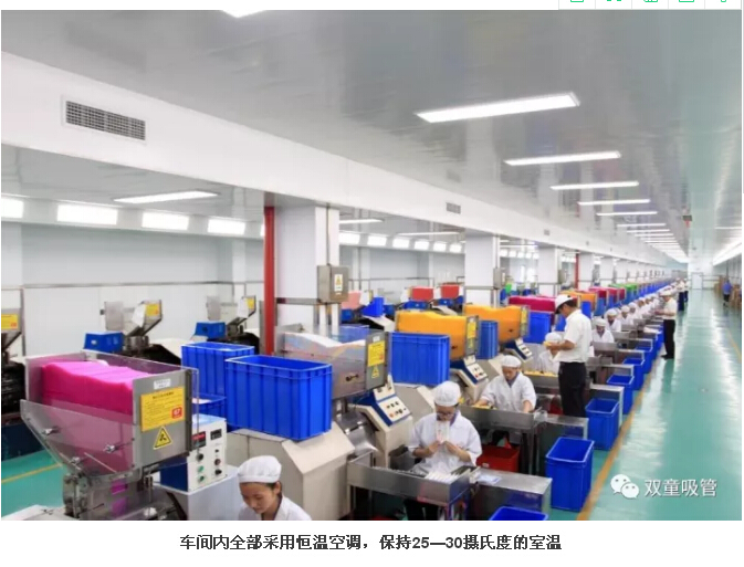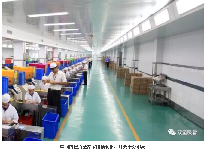 “雙童”車(chē)間的每個(gè)入口,有著許多安全、衛(wèi)生提示的標(biāo)牌,引導(dǎo)員工門(mén)在進(jìn)入車(chē)間時(shí)要注意安全和衛(wèi)生防護(hù)工作。進(jìn)入車(chē)間內(nèi)部,一列列整齊的機(jī)器、一箱箱五顏六色的吸管、一條條清晰分明的分界線(xiàn),車(chē)間內(nèi)全部安裝了恒溫空調(diào),屋頂全部進(jìn)行精裝修寬敞明亮,柱子和地腳線(xiàn)用不銹鋼進(jìn)行包邊,大大增加了建筑年限。所有員工皆穿著潔白的工作服,正在忙碌地進(jìn)行生產(chǎn)工作。