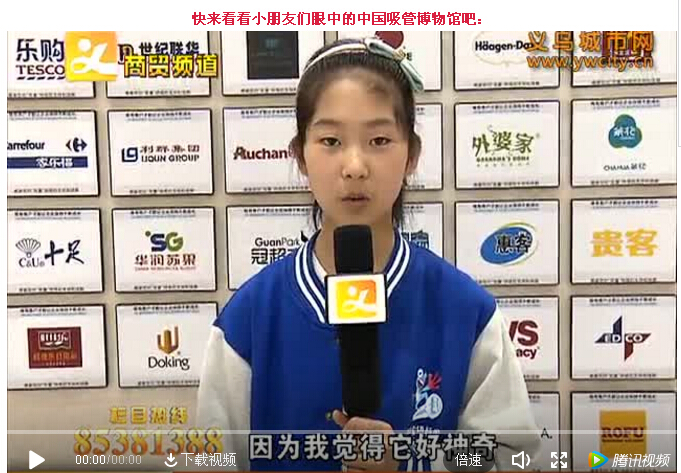 近日,義烏電視臺(tái)《快樂起跑線》播出了一群小記者來訪中國吸管博物館的節(jié)目,小記者們面對鏡頭毫不怯場,向觀眾朋友們介紹琳瑯滿目的吸管,并展示吸管的發(fā)展與變遷!