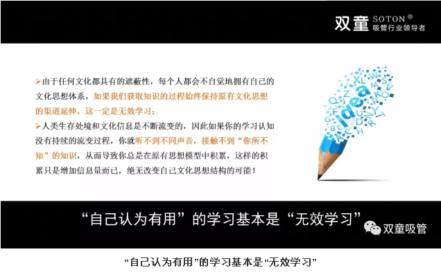 所以,由于任何文化都具有的遮蔽性,每個人都會不自覺地?fù)碛凶约旱奈幕枷塍w系。作為創(chuàng)業(yè)者或管理者來講,我們也要不斷調(diào)整自己的思想狀態(tài)和文化結(jié)構(gòu)。如果我們獲取知識的過程始終保持原有文化思想的渠道延伸,就會導(dǎo)致我們總是在原有思想模型中積累,這樣的積累只是增加信息量而已,絕無改變自己文化思想結(jié)構(gòu)的可能!