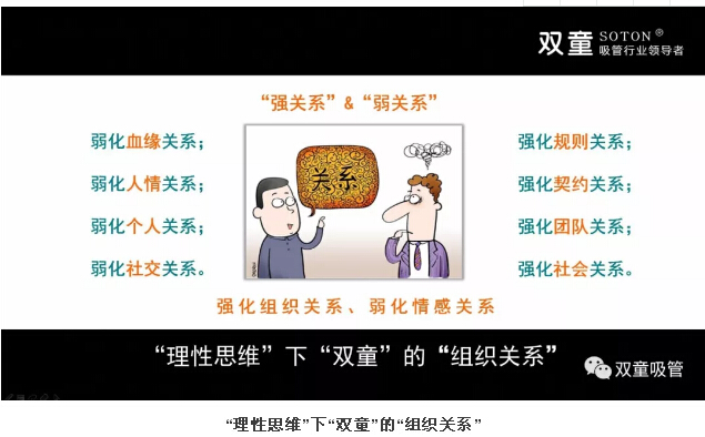 受到西方“理性思維”的影響和推動,“雙童”創(chuàng)立了一套組織關(guān)系哲學(xué),用來弱化血緣關(guān)系,強化規(guī)則關(guān)系;弱化人情關(guān)系,強化契約關(guān)系……