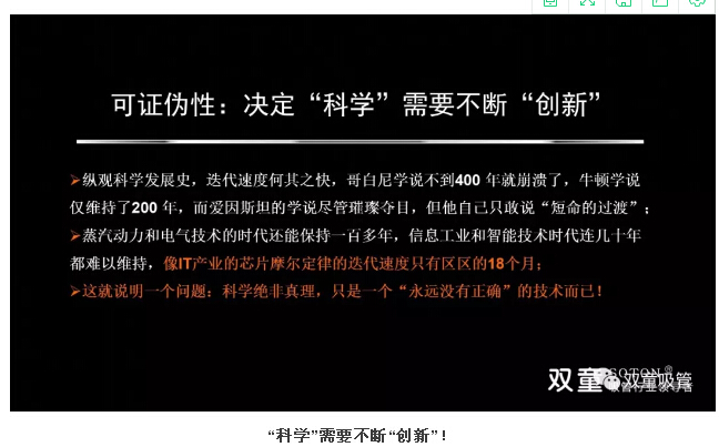 關(guān)于到底什么是“科學(xué)”?著名經(jīng)濟學(xué)家波普爾提出了“證偽主義科學(xué)論”對“科學(xué)”進(jìn)行了界定:凡是能夠證明是錯了的學(xué)問才能叫“科學(xué)”,并用極厚的一本書作了系統(tǒng)證明,這跟我們平常的理解正好相反。這就說明一個問題:科學(xué)絕非真理,只是一個“永遠(yuǎn)沒有正確”的技術(shù)而已!“科學(xué)”需要不斷“創(chuàng)新”!