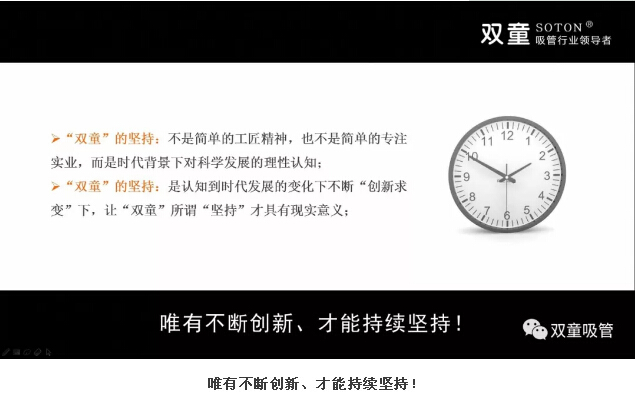 最后,樓仲平也總結道,“雙童”24年的專注堅持,并不是用簡單傳統(tǒng)的“匠人之心”,而是時代背景下對科學發(fā)展的理性認知?!半p童”的堅持是將創(chuàng)新精神融入到企業(yè)經(jīng)營的每個環(huán)節(jié),不斷改進新技術,不斷研發(fā)創(chuàng)新產(chǎn)品,從而煥發(fā)企業(yè)新活力!