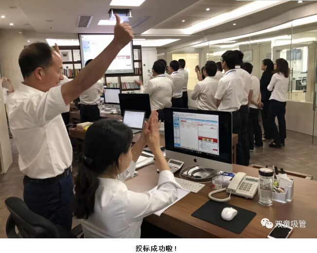 下午兩點,原本是所有“雙童”中高管理層開周例會的時間,但他們卻集體出現(xiàn)在行政中心,緊盯大屏幕,和樓仲平一同關(guān)注即將到來的二期生產(chǎn)擴建項目的地塊拍賣程序!當系統(tǒng)提醒土地使用權(quán)出讓成功時,大家都抑制不住激動的心情,自發(fā)地鼓掌慶祝,發(fā)自內(nèi)心地為這一好消息而高興!