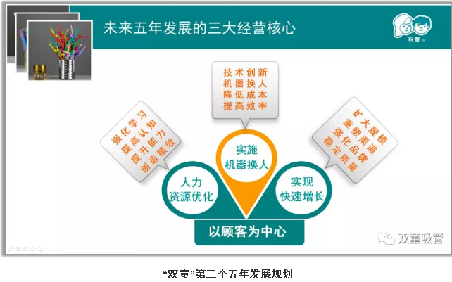 而發(fā)展到今天,“雙童”在工業(yè)用地、廠房面積、設備數(shù)量保持不變的情況下,企業(yè)產(chǎn)出效率相比于2005年已經(jīng)增長了足足六倍,在員工減少40%的情況下,人均產(chǎn)出率增長了八倍,逐漸轉(zhuǎn)型成為了吸管行業(yè)的領(lǐng)導者,牢牢占據(jù)了產(chǎn)業(yè)鏈頂端,成功實現(xiàn)了華麗轉(zhuǎn)身!