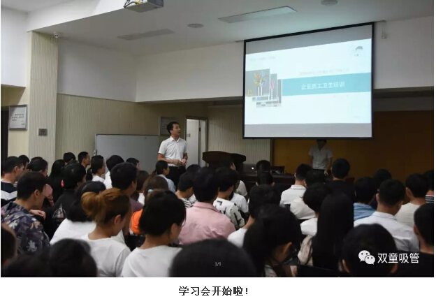 學(xué)習(xí)會(huì)一開場(chǎng),毛講師就通過幾個(gè)互動(dòng)提問,讓員工們各抒己見,分享了他們對(duì)于“衛(wèi)生”的看法。有些新員工對(duì)“雙童”的車間衛(wèi)生防護(hù)并不理解,認(rèn)為吸管這樣的附屬產(chǎn)品在小作坊也能做,為何要如此麻煩呢?