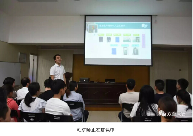 于是,毛講師和大家說明了原因:吸管是食品接觸類的產(chǎn)品,所以一定要保證產(chǎn)品的衛(wèi)生。唯有整潔的工廠才能生產(chǎn)出高品質(zhì)的產(chǎn)品。所以,早在2003年,“雙童”就一次性投入上億資金,建設(shè)了“GMP”食品標(biāo)準(zhǔn)的生產(chǎn)廠房,以保障公司所有廠區(qū)的衛(wèi)生與整潔,并促使所有員工的整體素質(zhì)不斷提升!