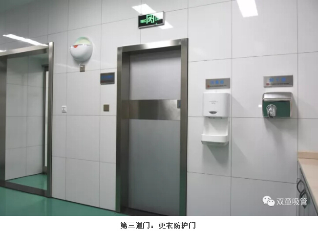 3.經(jīng)過了兩道防護(hù)門后,員工們更衣后通過更衣防護(hù)門進(jìn)入洗手消毒區(qū)域。