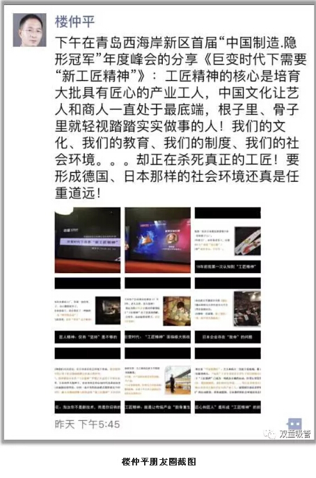 “工匠精神’的核心是培育大批具有‘匠心’的產(chǎn)業(yè)工人。但中國文化歷來注重‘學(xué)而優(yōu)則仕’,輕視商人和藝人。‘雙童’十多年來培養(yǎng)大學(xué)生下基層的努力幾乎完全失?。》此籍斚拢覀兊奈幕?、我們的教育、我們的制度、我們的社會環(huán)境……我們要形成德國、日本那樣的社會環(huán)境還真是任重道遠!”一席話下來,也引起現(xiàn)場觀眾對“工匠精神”的極大反思!