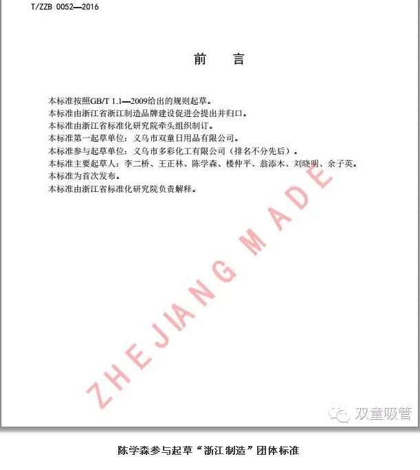 現(xiàn)在,陳學(xué)森主要負(fù)責(zé)客戶審廠、質(zhì)量檢驗(yàn)、產(chǎn)品衛(wèi)生防護(hù)、掌握產(chǎn)品動(dòng)態(tài),收集質(zhì)量信息等工作。2016年,他還參與了“浙江制造”團(tuán)體標(biāo)準(zhǔn)《聚丙烯飲用吸管》的起草工作,為企業(yè)又拿到了一頂標(biāo)準(zhǔn)方面的桂冠!這也意味著經(jīng)過(guò)這些年的努力,他終于從一個(gè)基層員工真正成長(zhǎng)為吸管行業(yè)的專(zhuān)家。