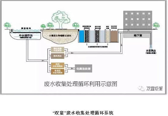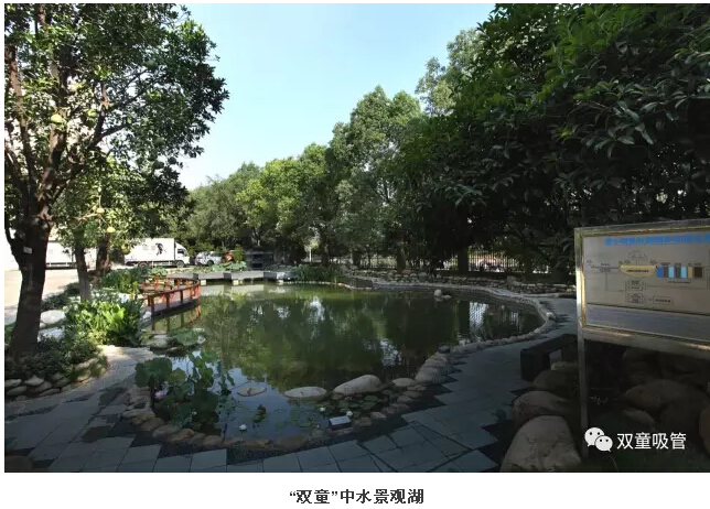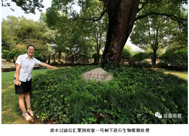 “雙童”景觀湖可不只是美化了環(huán)境,在碧綠的湖水下面還藏著中水儲(chǔ)存池呢!通過(guò)廢水收集處理循環(huán)利用系統(tǒng),“雙童”將企業(yè)所有的工業(yè)廢水、生活污水在過(guò)濾后匯聚到“雙童一號(hào)樹(shù)”下進(jìn)行生物吸附處理,再流入景觀池下面的中水池中。