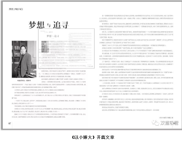 親愛的粉絲們,吸管妞今天要給大家推薦“雙童”企業(yè)文化叢書《以小博大》中的開篇好文《夢(mèng)想與追尋》。本篇文章由“雙童”當(dāng)家人樓仲平親筆撰寫,他用平實(shí)樸素的語言講述了他的人生經(jīng)歷和創(chuàng)業(yè)經(jīng)歷,講述了他對(duì)于夢(mèng)想和追尋話題所引發(fā)的思考和感悟, 希望能對(duì)大家有所幫助和啟迪!