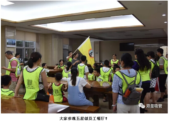 參觀完博物館后,大家接著參觀了“雙童”節(jié)能降耗系統(tǒng)和員工餐廳。吸管妹妹和大家介紹“雙童”員工的吃住全都是免費(fèi)時,有位小朋友天真地問道:我們今天是不是能在這里吃飯啦?一句話逗笑了所有人!
