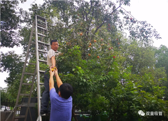 廠車也成了摘柿子的好“工具”,