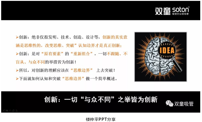 在分享過(guò)程中,樓仲平提到生意難做是因?yàn)?/span>“思維固定”。身處高速變化的時(shí)代,如何突破思維遮蔽,將自身思維邊界打開(kāi),成為創(chuàng)業(yè)者們必須面對(duì)的問(wèn)題!接下來(lái),吸管妞就結(jié)合視頻和大家重點(diǎn)分享課程第三章《生意難做是因?yàn)椤八季S固定”了》!