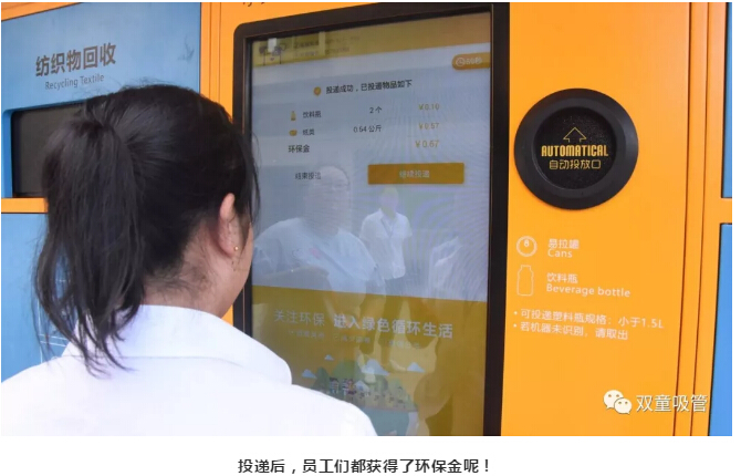 以后“雙童”人可以把各種垃圾進行分類“投喂”給廠區(qū)里的“小黃狗”,不僅促進了環(huán)保,還可根據投入垃圾的數量和種類,獲得對應金額的鼓勵金哦!聽到這,大家是不是有些羨慕“雙童”人呢?