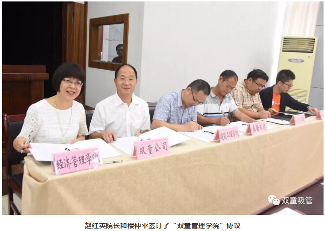 9月4日上午,“雙童”樓仲平受邀前往義烏工商職業(yè)技術(shù)學(xué)院文美廳,參加“義烏工商職業(yè)技術(shù)學(xué)院——雙童管理學(xué)院”簽約儀式。義烏工商學(xué)院經(jīng)濟管理學(xué)院院長趙紅英與“雙童”樓仲平簽署了冠名學(xué)院合作協(xié)議,校領(lǐng)導(dǎo)為冠名學(xué)院授牌,“義烏工商職業(yè)技術(shù)學(xué)院——雙童管理學(xué)院”正式成立!