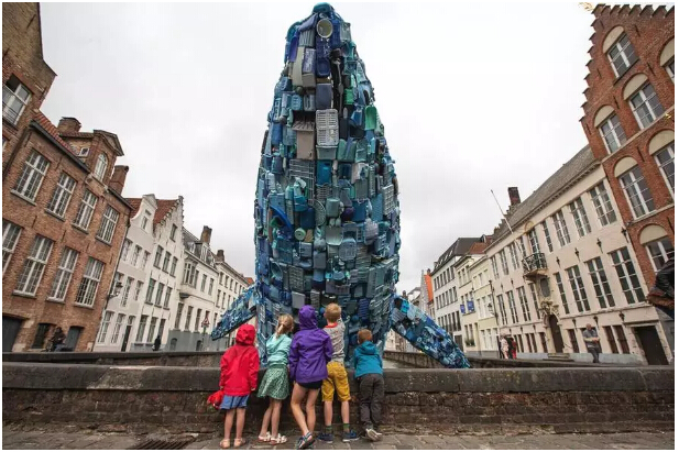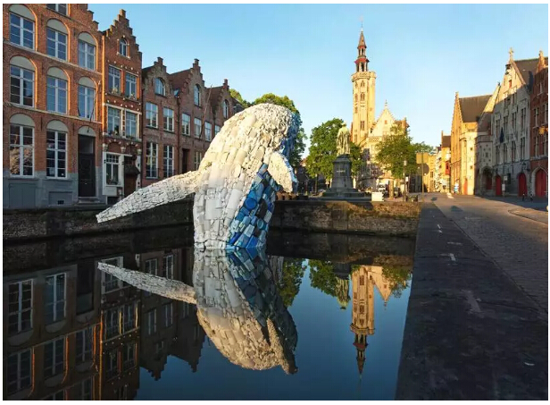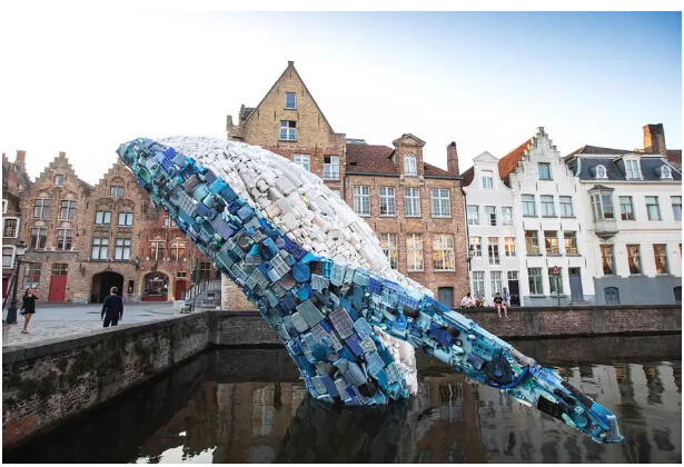 該作品以躍姿鯨魚的被安置在比利時(shí)城市的主要運(yùn)河中供游客參觀,這一令人印象深刻的裝置作品旨在讓人們關(guān)注海洋中數(shù)量巨大的塑料廢棄物等海洋垃圾壞境問題。
