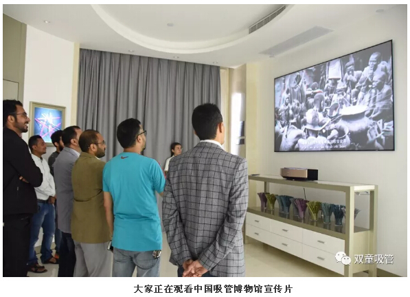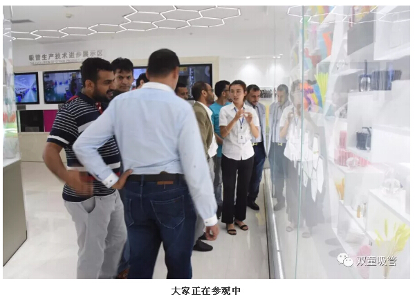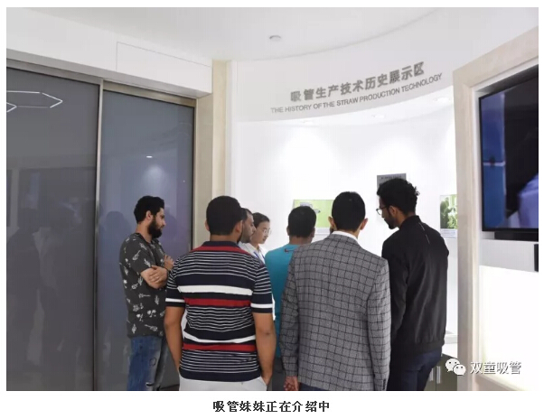 首先,吸管妹妹先帶著這批客人參觀一下“雙童”。第一站就是中國(guó)吸管博物館!看,琳瑯滿目的吸管紛紛收到了外國(guó)友人們的好評(píng)!大家在參觀過(guò)程中對(duì)造型各異的各種吸管,甚至是對(duì)制作吸管的機(jī)器都充滿著好奇!