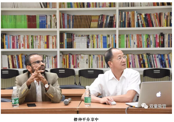 參觀結(jié)束后,大家來(lái)到了九樓閣與“雙童”樓仲平進(jìn)行了互動(dòng)交流。在交流過(guò)程中,有一位外國(guó)友人向樓仲平提出問(wèn)題:你在創(chuàng)業(yè)初期時(shí)為什么會(huì)選擇吸管這么難做的產(chǎn)品呢?