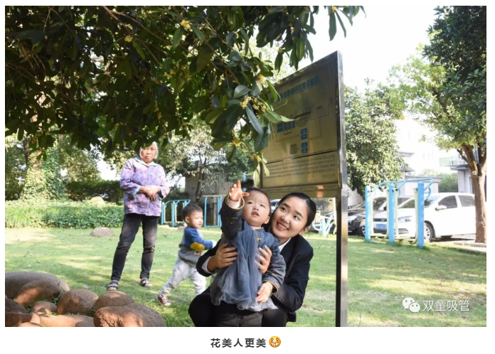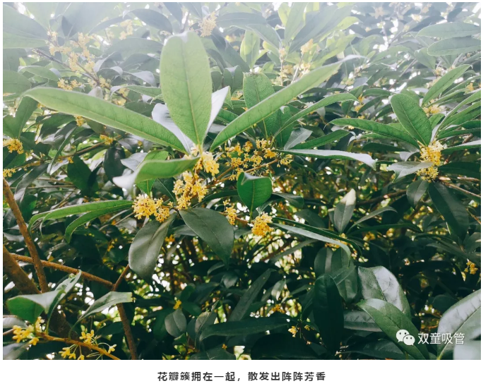 在“雙童”,春來聞鳥鳴,夏到賞雨荷,秋可看桂雨,冬至觀雪景。在桂花飄香的季節(jié)里,在如此美好的環(huán)境中,聞著桂花香味,使人芬氛浮動(dòng)、醉人心田,實(shí)在是幸福感滿滿呀!