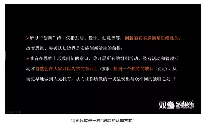 由此我們得出一個結論:“創(chuàng)新”絕非僅指發(fā)明、設計、創(chuàng)意等,創(chuàng)新是一種“思維的認知方式”,在大家都習以為常的東西上,找到一個獨特的缺口,從而更早地做到“人無我有”。