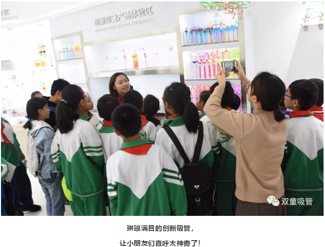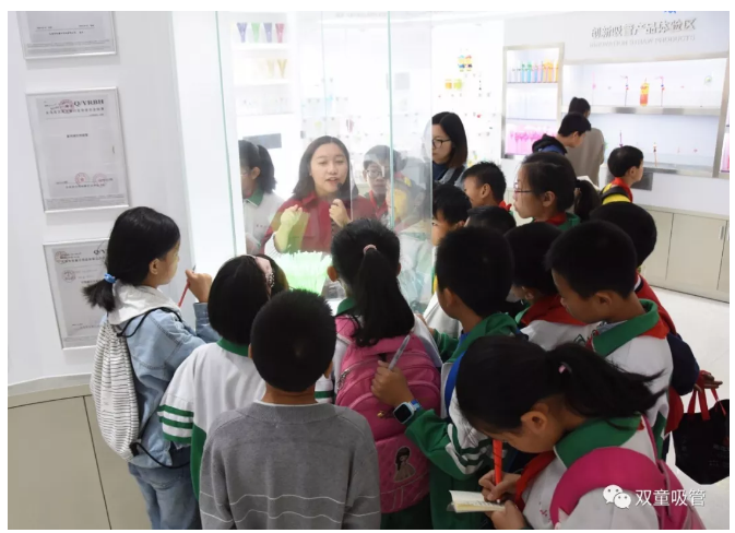 緊接著,在第二天,前洪小學(xué)的幾十位同學(xué)們也來到了“雙童”進行參觀游學(xué)。為什么一家民營企業(yè)會吸引這么多小學(xué)生過來參觀呢?下面,吸管妞就帶大家看看吧!