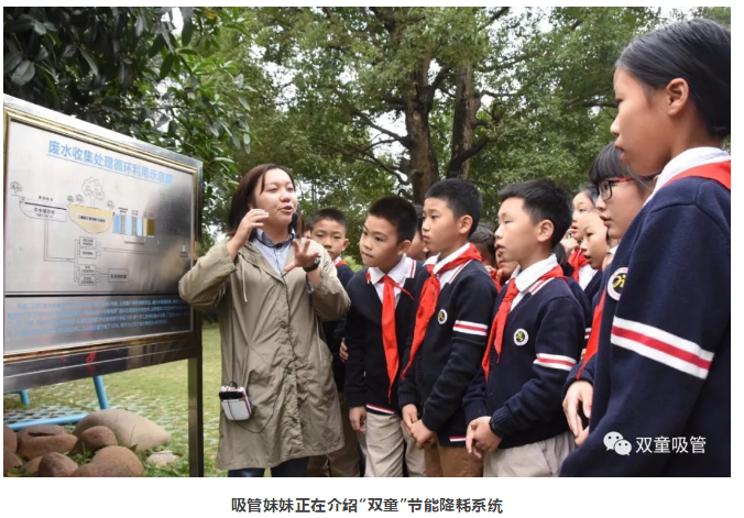 在介紹“雙童”節(jié)能降耗系統(tǒng)時,吸管妹妹介紹了“雙童”員工產(chǎn)生的廢水、雨水都會收集起來并進行循環(huán)利用。雨水處理后可用于員工生活用水,廢水處理后用于綠化噴淋、馬桶沖水等,每年都為企業(yè)省下近百萬元!孩子們聽后直呼好神奇!