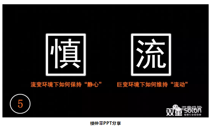 第二個字是“流”。在高速變化的時代,資源和信息高速流變,人才高度流動……在這樣的大環(huán)境下,企業(yè)發(fā)展呈現(xiàn)出一種不可預測的情況。作為行業(yè)細分的領(lǐng)先企業(yè),你應該通過主動的方式、迎合的方式、應變的方式、創(chuàng)新的方式,從而保持企業(yè)有序流動,保持創(chuàng)新。