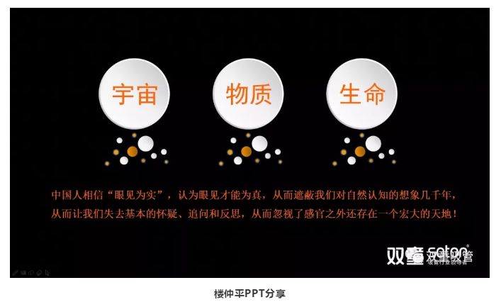 在本次課程中,樓仲平強(qiáng)調(diào)了一個觀點(diǎn):“真相”往往在“眼睛之外”,并通過案例呈現(xiàn)來認(rèn)證眼界之外還有一個更宏大的天地。