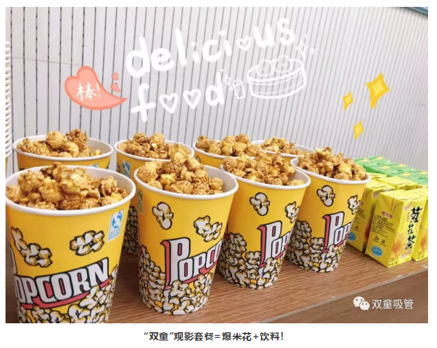 電影開(kāi)始之前,大家早早的就來(lái)排隊(duì)領(lǐng)取“雙童”觀影標(biāo)配套餐:爆米花+飲料!還有小觀眾甚至自帶了放大版爆米花桶,對(duì)吸管妞說(shuō):“我今天的愿望就是把這桶裝滿!我和小伙伴就要這一桶!”吸管妞當(dāng)然要滿足他們的愿望啦,不夠還可以續(xù)“桶”哦