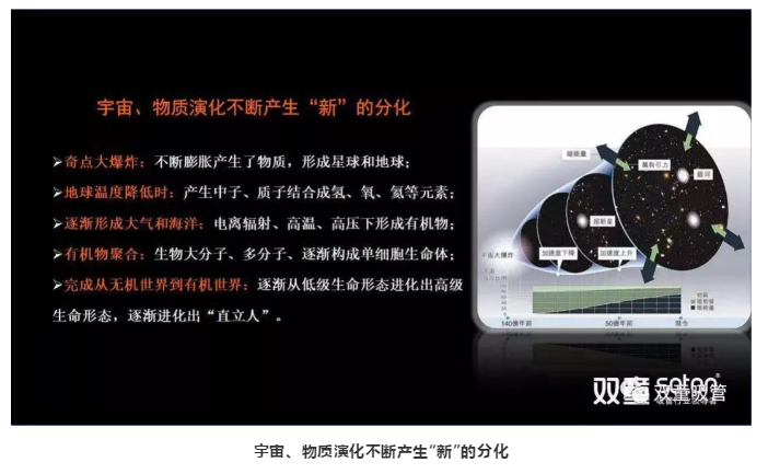 首先是物質的創(chuàng)新。宇宙起源于奇點大爆炸,之后不斷膨脹產生了物質,隨著不斷分化,產生了各種不同的物質。