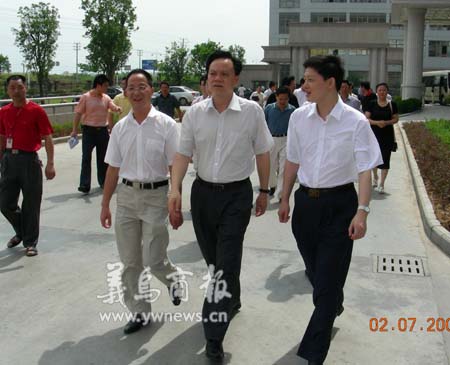 2007年7月2日上午,浙江省常務(wù)副省長(zhǎng)陳敏爾協(xié)省國(guó)土資源廳廳長(zhǎng)王松林一行10多人,以及金華市委常委、義烏市委書(shū)記吳尉榮和義烏市委副書(shū)記、市長(zhǎng)何美華等40多位領(lǐng)導(dǎo),前來(lái)本公司進(jìn)行土地節(jié)約集約資源利用實(shí)施情況的實(shí)地考察,公司董事長(zhǎng)樓仲平對(duì)陳省長(zhǎng)一行匯報(bào)了雙童公司近年來(lái)對(duì)企業(yè)節(jié)約集約用地、循環(huán)經(jīng)濟(jì)、生態(tài)工廠等建設(shè)情況的報(bào)告。
