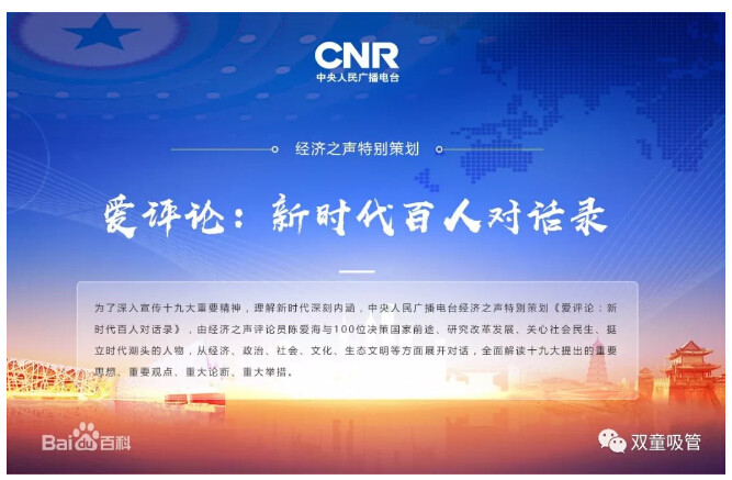 近日,中央人民廣播電臺經(jīng)濟之聲播出《愛評論:新時代百人對話錄》改革開放四十周年特輯。其中,也播出了經(jīng)濟之聲首席評論員陳愛海對話“雙童”樓仲平的專訪節(jié)目!