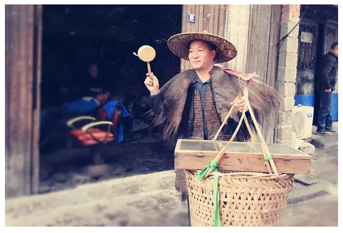 挑貨郎擔只在春節(jié),平常沒的挑,通常臘月二十左右走,元宵前回來。每天挑一百多斤的東西,走幾十公里山路,晚上十點鐘回家,腳上都是磨爛的血泡,遇上下雨天就渾身濕透。到了城市,城里人看不起我們,臟兮兮,人家不喜歡,年輕人老是欺負你、戲弄你。