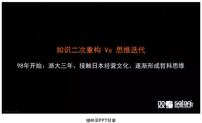 首先,樓仲平簡(jiǎn)單介紹了自己知識(shí)重構(gòu)的過(guò)程,正是通過(guò)知識(shí)重構(gòu)推動(dòng)了自身的思維迭代,從而通過(guò)對(duì)事務(wù)的抽離及對(duì)以往經(jīng)驗(yàn)的理解,形成了對(duì)企業(yè)管理的思維模型。此次課程中,樓仲平主要圍繞三大思維模型,引導(dǎo)學(xué)員們認(rèn)知世界的真相!