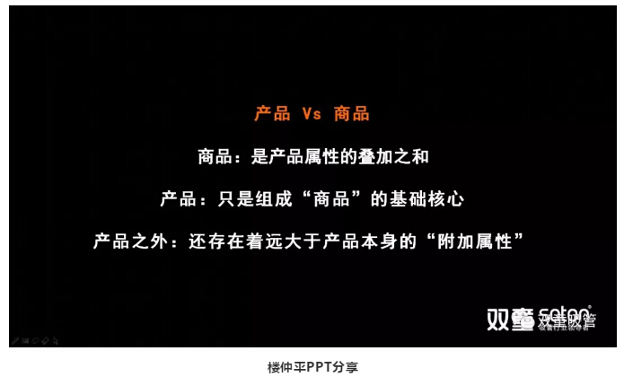 綜合以上來(lái)說(shuō),實(shí)際上樓仲平此次的課程分享也是屬于商品屬性中的“創(chuàng)始人IP”,通過(guò)他的傳播,獲得了在座觀(guān)眾的認(rèn)同,從而形成口碑傳播,對(duì)市場(chǎng)、客戶(hù)和渠道產(chǎn)生輻射影響!