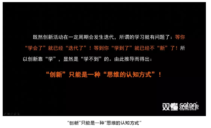 所以,創(chuàng)新不能靠“學(xué)”,因?yàn)榈饶恪皩W(xué)到了”,就已經(jīng)不“新”了。創(chuàng)新一定是要對(duì)“舊有事物”的深度理解,是一種“思維方式”。