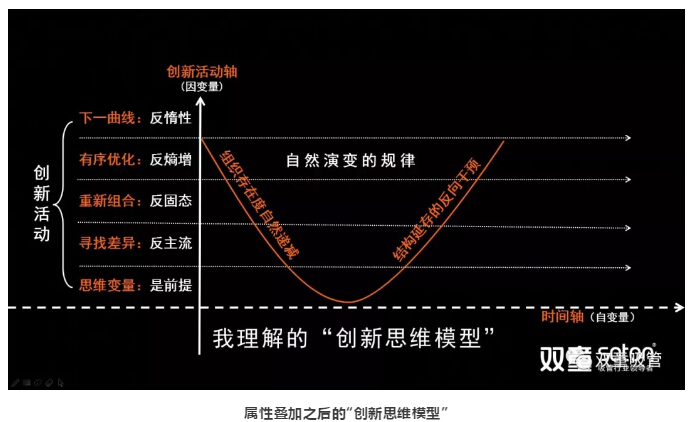 在這個(gè)模型里面,創(chuàng)新活動(dòng)作為創(chuàng)新思維模型的疊加屬性,越往上走,說(shuō)明企業(yè)的創(chuàng)新深度越深……